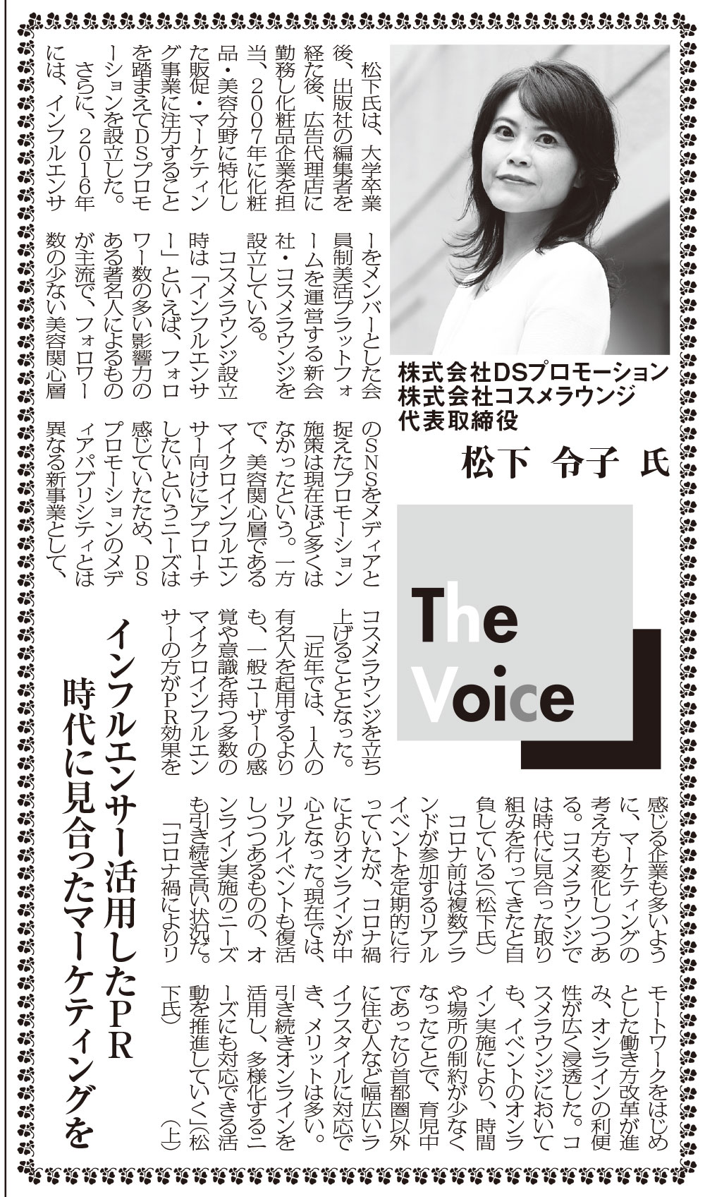 The Voice欄にて代表取締役 松下令子への取材記事が掲載されました。